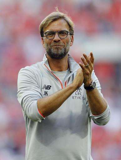 Liverpool's head coach Juergen Klopp smiles after his team won the International Champions Cup soccer match between Liverpool and Barcelona at Wembley stadium in London, Saturday, Aug. 6, 2016 . (AP Photo/Frank Augstein) The Associated Press