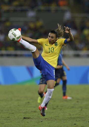 Brazil's Marta controls the ball during a group E match of the women's Olympic football tournament between Sweden and Brazil at the Rio Olympic Stadium in Rio De Janeiro, Brazil, Saturday, Aug. 6, 2016. (AP Photo/Leo Correa) The Associated Press