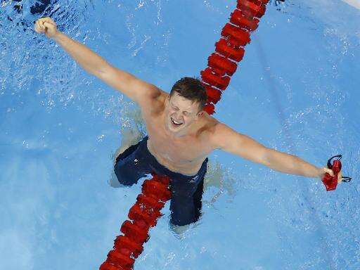 Peaty pounded the water when he saw his time. Then he balanced himself atop a lane rope, spread his arms wide and looked toward the roof of the Olympic Aquatics Stadium.