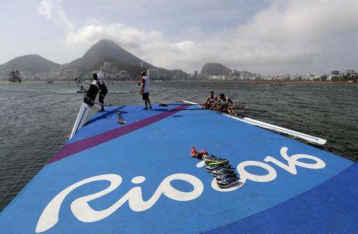 Sunday's rowing regatta was called off after a two-hour delay following a pair of capsizes in the choppy seas during the morning practice. Race officials said winds gusting up to 34 mph (15 meters per second) pushed buoys into the lanes and capsized two boats during morning practice.