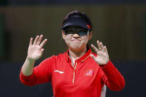 CHINA GOLD : China's bid for a gold in shooting seemed to take a hit when a two-time defending gold medalist failed to qualify. But Zhang Mengxue picked up the slack, earning China's fourth air pistol gold in the last five Games. China has dominated the air rifle and pistol shooting events at the Olympics, earning nine gold medals since the 2000 Sydney Games.