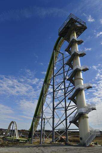 FILE - This Nov. 2013 file photo shows Schlitterbahn's new Verruckt speed slide/water coaster in Kansas City, Kan. A 12-year-old boy died Sunday, Aug. 7, 2016, on the Kansas water slide that is billed as the world's largest, according to officials. Kansas City, Kan., police spokesman Officer Cameron Morgan said the boy died at the Schlitterbahn Waterpark, which is located about 15 miles west of downtown Kansas City, Missouri. Schlitterbahn spokeswoman Winter Prosapio said the child died on one of the park's main attractions, Verruckt, a 168-foot-tall water slide that has 264 stairs leading to the top. (Jill Toyoshiba/The Kansas City Star via AP, File) The Associated Press