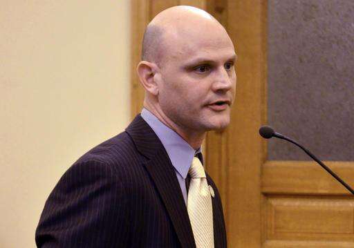 FILE - In this Wednesday, March 18, 2015 file photo, Kansas state Rep. Scott Schwab speaks at the Statehouse in Topeka, Kan. The young son of a Kansas state lawmaker died on a water slide that is billed as the world's largest, according to officials and the boy's family. Authorities did not immediately identify the child who died Sunday, Aug. 7, 2016 at Schlitterbahn Waterpark in Kansas City, Kansas, but state Rep. Scott Schwab and his wife released a statement saying it was their son Caleb Thomas Schwab. (AP Photo/Nicholas Clayton, file) The Associated Press