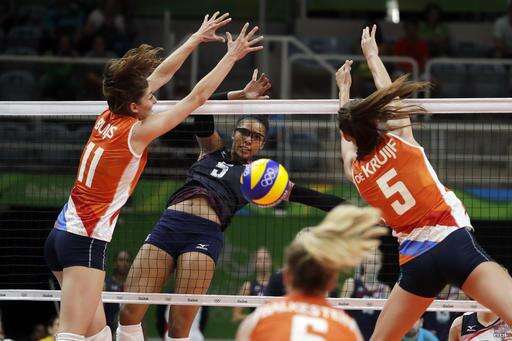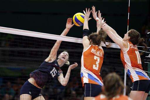 The U.S. rallied from one set down and again behind 2-1 to win 18-25, 25-18, 21-25, 25-20, 15-8 on a day Netherlands captain Maret Balkestein-Grothues had to be helped off midway through the fourth set with a right ankle injury and didn't return.
