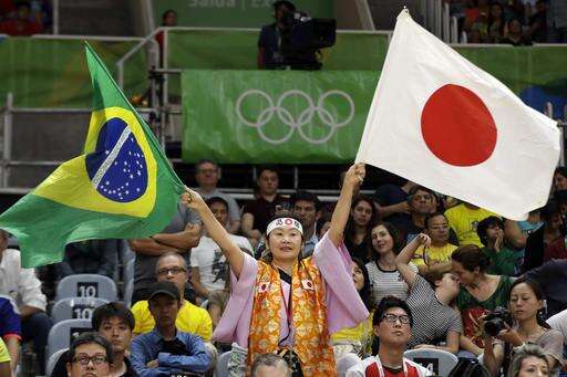 A fan waves flags during a Women's preliminary volleyball match between Japan and Cameroon at the 2016 Summer Olympics in Rio de Janeiro, Brazil, Monday, Aug. 8, 2016. (AP Photo/Matt Rourke) The Associated Press
