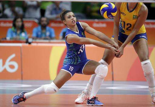 Brazil's Leia Henrique da Silva Nicolosi bumps during a women's preliminary volleyball match against Argentina at the 2016 Summer Olympics in Rio de Janeiro, Brazil, Monday, Aug. 8, 2016. (AP Photo/Jeff Roberson) The Associated Press