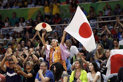 A fan waves a flag during a Women's preliminary volleyball match between Japan and Cameroon at the 2016 Summer Olympics in Rio de Janeiro, Brazil, Monday, Aug. 8, 2016. (AP Photo/Matt Rourke) The Associated Press