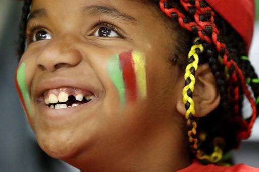 A young fan of team Cameroon smiles ahead of a Women's preliminary volleyball match between Cameroon and Japan at the 2016 Summer Olympics in Rio de Janeiro, Brazil, Monday, Aug. 8, 2016. (AP Photo/Matt Rourke) The Associated Press