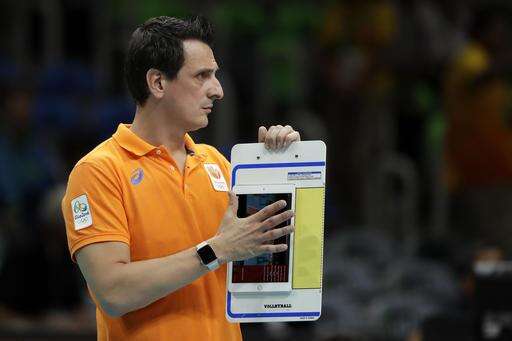 Netherlands head coach Giovanni Guidetti follows the action during a women's preliminary volleyball match against the United States at the 2016 Summer Olympics in Rio de Janeiro, Brazil, Monday, Aug. 8, 2016. (AP Photo/Matt Rourke) The Associated Press