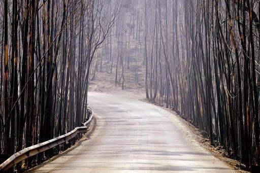 Burnt trees line a road, Tuesday, Aug. 9 2016, near Agueda, in the region of Aveiro, northern Portugal. The National Civil Protection Service said some 2,900 firefighters were in action Tuesday fighting dozens of forest fires. The worst-hit areas were in northern Portugal, where temperatures have exceeded 30 degrees Celsius (86 Fahrenheit) since Saturday. (AP Photo/Sergio Azenha) The Associated Press
