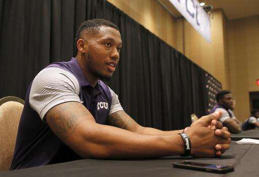 FILE - In this July 18, 2016, file photo, TCU defensive end Josh Carraway responds to questions during Big 12 college football media days, in Dallas. Carraway was one of the league’s top pass-rushers with nine sacks last season. (AP Photo/Tony Gutierrez, File) The Associated Press