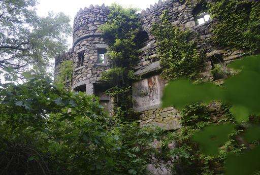In this Thursday, June 30, 2016 photo Hearthstone Castle is overgrown with foliage in Danbury, Conn. The city is planning to demolish the castle, a landmark listed on the National Register of Historic Places, that was built in 1899 and has fallen into disrepair. (Tyler Sizemore/Hearst Connecticut Media via AP)