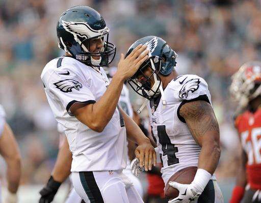 Philadelphia Eagles quarterback Sam Bradford, left, congratulates Eagles running back Ryan Mathews (24) after scoring a touchdown during the first half of a preseason NFL football game against the Tampa Bay Buccaneers on Thursday, Aug. 11, 2016, in Philadelphia. (AP Photo/Michael Perez) The Associated Press