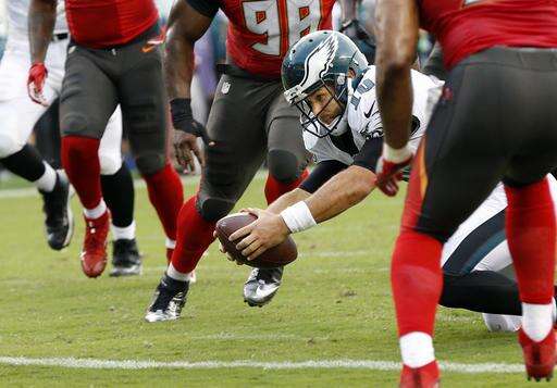 PHILADELPHIA (AP) - Philadelphia needed 97 seconds to score its only touchdowns Thursday night in beating sloppy Tampa Bay 17-9 in the preseason opener for both teams.