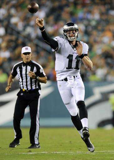 Philadelphia Eagles quarterback Carson Wentz (11) throws a pass during the second half of a preseason NFL football game against the Tampa Bay Buccaneers on Thursday, Aug. 11, 2016, in Philadelphia. (AP Photo/Michael Perez) The Associated Press