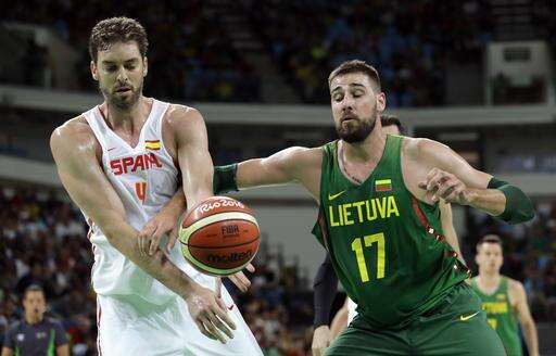 Mindaugas Kuzminskas scored 17 for Lithuania, which never led but had already clinched a spot in the quarterfinals.