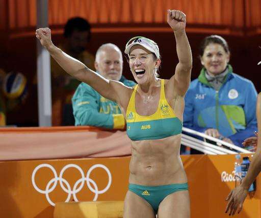In the previous match Saturday night, Australia rallied after losing the first set to beat Poland and advance to a quarterfinal matchup with American women Kerri Walsh Jennings and April Ross.