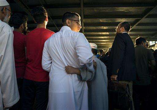 In this Saturday, Aug. 13, 2016, photo, people gather inside the Al-Furqan Jame Masjid mosque in the Ozone Park section of Queens, not far from the crime scene where the leader of the mosque and an associate were fatally shot in a brazen daylight attack as they left afternoon prayers Saturday. Police said 55-year-old Imam Maulama Akonjee and his 64-year-old associate, Tharam Uddin, were shot in the back of the head as they left the mosque shortly before 2 p.m. (AP Photo/Craig Ruttle)