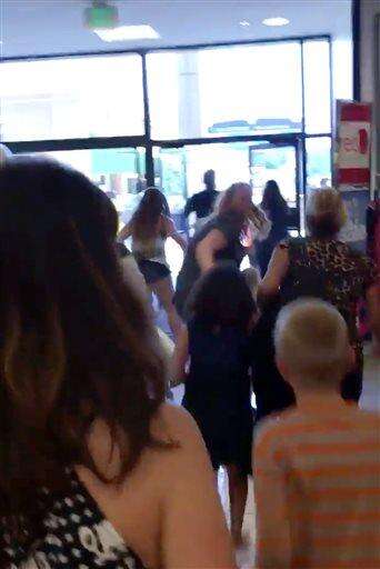 Video posted on social media sites shows dozens of people running toward mall exit doors as numerous screams were heard. Outside the mall, where people gathered afterward, a police officer got on the loudspeaker of a fire truck and said there was no one shot in the mall. Witnesses described chaos after reports of shots.