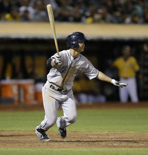 Seattle Mariners' Norichika Aoki grounds out against the Oakland Athletics in the ninth inning of a baseball game Saturday, Aug. 13, 2016, in Oakland, Calif. (AP Photo/Ben Margot) The Associated Press