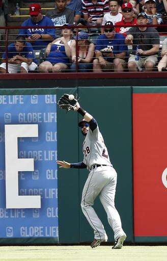ARLINGTON, Texas (AP) - Michael Fulmer pitched a four-hitter in Detroit's second straight shutout of Texas, and Victor Martinez and J.D. Martinez homered among three hits apiece in the Tigers' 7-0 victory Sunday.