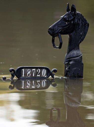 Mailboxes are seen just above flood water in Prairieville, La., Tuesday, Aug. 16, 2016. As waters begin to recede in parts of Louisiana, some residents struggled to return to flood-damaged homes on foot, in cars and by boat. (AP Photo/Max Becherer)