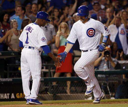The homer capped a five-run first inning after RBI singles by Ben Zobrist and Addison Russell.