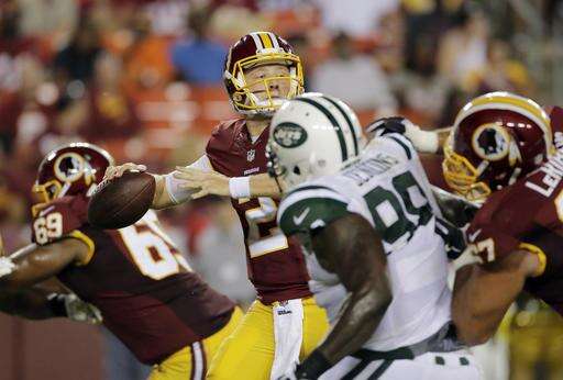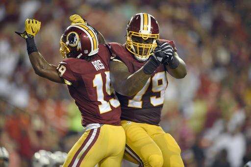 Redskins: Along with Ross, WR Ryan Grant had four catches for 43 yards. ... OL Spencer Long's costly hands-to-the-face penalty that led to a safety didn't help him in a competition at left guard against Shawn Lauvao, though it came with him at center.
