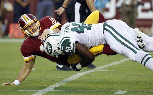Cornerback Darrelle Revis made an impact in his preseason debut, picking off McCoy in the end zone during Washington's opening drive. Starting quarterback Ryan Fitzpatrick was 4 of 9 for 35 yards, and Bilal Powell ran for 23 yards on three carries.