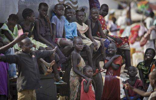 FILE - In this Sunday Dec. 29 2013 file photo, displaced South Sudanese children gather around a water truck to fill containers, at a United Nations compound which has become home to thousands of people displaced by the recent fighting, in the capital Juba, South Sudan. Sudan's political limbo continued Friday, Aug. 19, 2016 after rebel leader Riek Machar fled the country earlier in the week. Last month government and rebel forces clashed in the capital, killing hundreds of civilians and Machar was controversially removed as First Vice President. Machar's departure puts South Sudan's peace deal into disarray at the same time the country is suffering from a humanitarian crisis. (AP Photo/Ben Curtis, file) The Associated Press