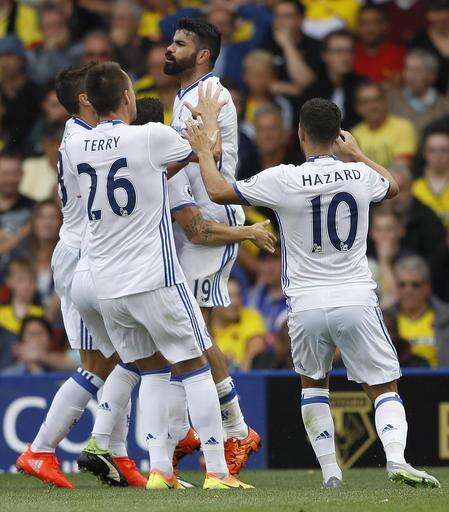 Like Guardiola, Chelsea coach Antonio Conte also is in his first season in English football and has begun with consecutive 2-1 wins, the latest coming at Watford. Diego Costa scored an 87th-minute winner at Vicarage Road, five days after an 89th-minute clincher against West Ham.
