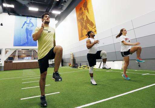 College athletes have signed up for the program. Haley Nielsen and Stephen Kalina have taken part in small-group sessions at the Mayo-EXOS site in Minneapolis this summer, pushing sleds on the artificial turf and sweating through plyometric box jumps.