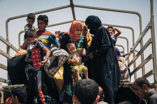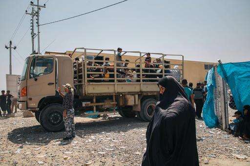 In this Aug. 17, 2016 photo, a truck carrying civilians who recently fled territory formerly controlled by Islamic State militants arrives at at the Dibaga Camp for displaced people in Hajj Ali, northern Iraq. As the Islamic State group loses ground in Iraq, the militants are showing strains in their rule over areas they still control, growing more brutal, killing deserters and relying on younger recruits, according to residents. The accounts pointed to the difficulties the extremist group is facing as Iraqi forces backed by the United States prepare for an assault on Mosul. (AP Photo/Alice Martins) The Associated Press