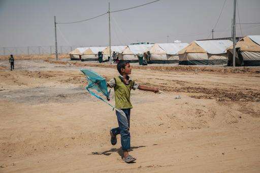 In this Aug. 17, 2016 photo, a boy plays with a kite, at the Dibaga Camp for displaced people in Hajj Ali, northern Iraq. As the Islamic State group loses ground in Iraq, the militants are showing strains in their rule over areas they still control, growing more brutal, killing deserters and relying on younger recruits, according to residents. The accounts pointed to the difficulties the extremist group is facing as Iraqi forces backed by the United States prepare for an assault on Mosul. (AP Photo/Alice Martins) The Associated Press