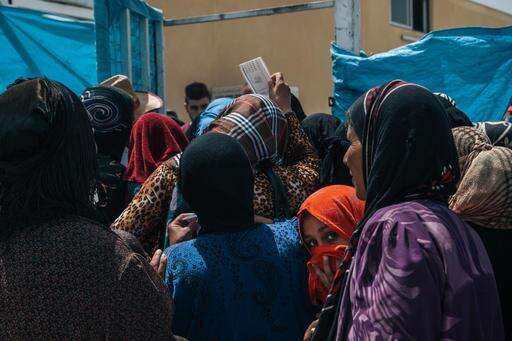 In this August 17, 2016 photo, women try to enter a fenced area where men are interrogated before being allowed to stay, at the Dibaga Camp for displaced people in Hajj Ali, northern Iraq. As the Islamic State group loses ground in Iraq, the militants are showing strains in their rule over areas they still control, growing more brutal, killing deserters and relying on younger recruits, according to residents. The accounts pointed to the difficulties the extremist group is facing as Iraqi forces backed by the United States prepare for an assault on Mosul. (AP Photo/Alice Martins) The Associated Press