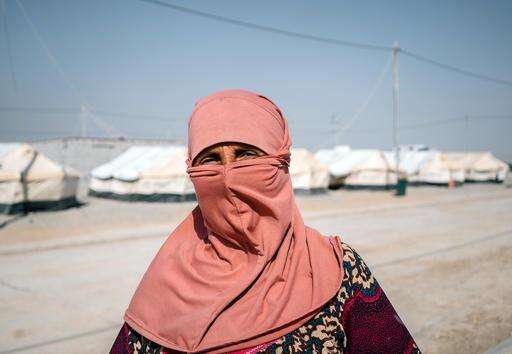 In this August 17, 2016 photo, Sabha Khal Salih poses for a portrait at the Dibaga Camp for displaced people, where she has been staying with her family after fleeing her hometown of Qayyarah, in the village of Hajj Ali, in northern Iraq. As the Islamic State group loses ground in Iraq, the militants are showing strains in their rule over areas they still control, growing more brutal, killing deserters and relying on younger recruits, according to residents. The accounts pointed to the difficulties the extremist group is facing as Iraqi forces backed by the United States prepare for an assault on Mosul. (AP Photo/Alice Martins) The Associated Press