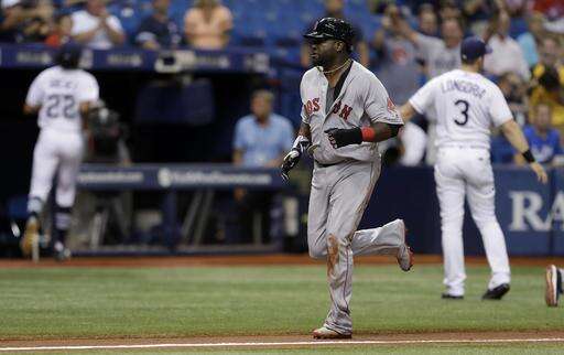 Boston Red Sox's David Ortiz runs home while scoring on a throwing error by Tampa Bay Rays right fielder Steven Souza Jr. during the third inning of a baseball game Tuesday, Aug. 23, 2016, in St. Petersburg, Fla. (AP Photo/Chris O'Meara) The Associated Press