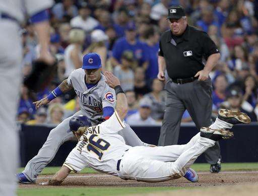 San Diego's only other threat was in the sixth, as Brett Wallace advanced to third on a one-out single and two-base error by Heyward in right when he overran the ball. But Lester struck out Travis Jankowski looking and, after a walk to Alexei Ramirez, struck out Wil Myers with a devastating curveball.