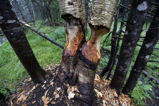 FILE - In this Aug. 4, 2015 file photo, birch trees show signs of beaver activity on woodland proposed for a national park in Penobscot County, Maine. President Barack Obama on Wednesday, Aug. 24, 2016 declared a new national monument in Maine on 87,000 acres donated by Roxanne Quimby, fulfilling the conservationist's goal of gifting the land during the 100th anniversary of the National Park Service. (AP Photo/Robert F. Bukaty, File) The Associated Press