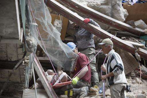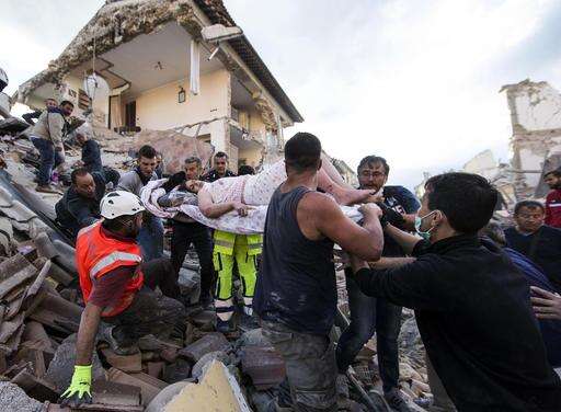 The mayor said about 70 people had been staying in the Hotel Roma, a town landmark that has a restaurant which serves the famous pasta dish. Rescue workers pulled five bodies from the rubble of the hotel but had to halt rescue operations late Wednesday night because it was too dangerous working in the dark.