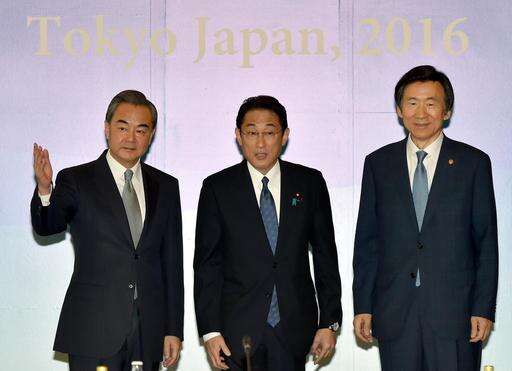 Kishida said the ministers reaffirmed their effort in prompting North Korea to use restraint. "I hope to coordinate closely in order for Japan, China and South Korea to lead the efforts of the international community," he said.