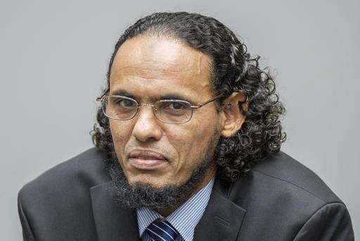 Ahmad Al Faqi Al Mahdi appears at the International Criminal Court in The Hague, Netherlands, Monday, Aug. 22, 2016, at the start of his trial on charges of involvement in the destruction of historic mausoleums in the Malian desert city of Timbuktu. Prosecutors allege that Al Mahdi was a member of an al Qaida-linked occupying force that destroyed most of Timbuktu's World Heritage-listed mausoleums in 2012. (AP Photo/Patrick Post, Pool) The Associated Press
