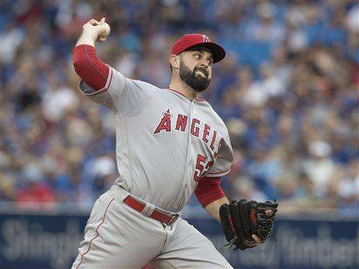 Los Angeles Angels starting pitcher Matt Shoemaker throws against the Toronto Blue Jays during the first inning of a baseball game Wednesday, Aug. 24, 2016, in Toronto. (Fred Thornhill/The Canadian Press via AP) The Associated Press