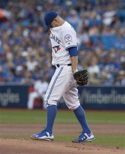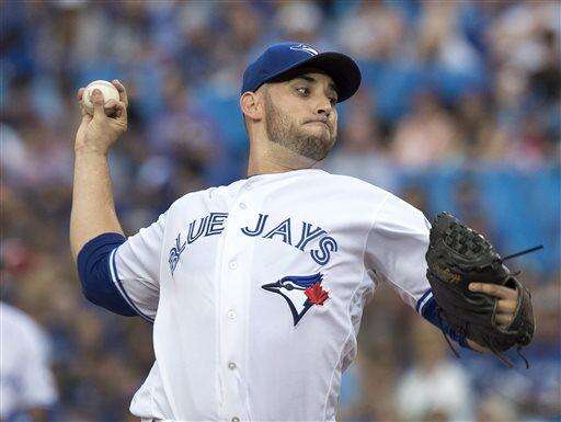 Toronto Blue Jays starting pitcher Marco Estrada throws to a Los Angeles Angels batter during the first inning of a baseball game Wednesday, Aug. 24, 2016, in Toronto. (Fred Thornhill/The Canadian Press via AP) The Associated Press
