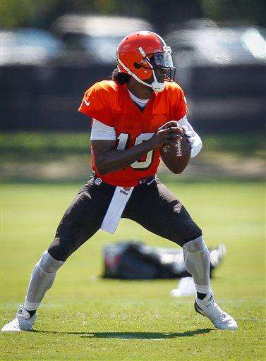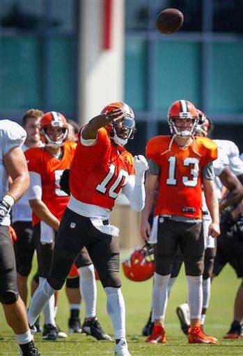 Cleveland Browns quarterback Robert Griffin III during a joint practice with the Tampa Bay Buccaneers at One Buc Place in Tampa, Fla., Tuesday, Aug. 23, 2016. (Loren Elliott/The Tampa Bay Times via AP) The Associated Press
