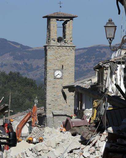 The bell tower of Amatrice stands as the surrounding buildings are damaged following an earthquake, in Amatrice, central Italy, Thursday, Aug. 25, 2016. Rescue crews raced against time Thursday looking for survivors from the earthquake that leveled three towns in central Italy, but the death toll rose to over 240 and Italy once again anguished over trying to secure its medieval communities built on seismic lands. (AP Photo/Alessandra Tarantino) The Associated Press
