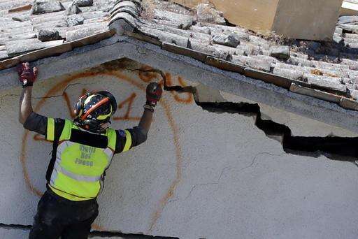 A firefighter marks a house with paint signaling the end of a search following Wednesday's earthquake in Pescara Del Tronto, Italy, Thursday, Aug. 25, 2016. Rescue crews raced against time Thursday looking for survivors from the earthquake that leveled three towns in central Italy, but the death toll rose to 247 and Italy once again anguished over trying to secure its medieval communities built on seismic lands. (AP Photo/Gregorio Borgia) The Associated Press