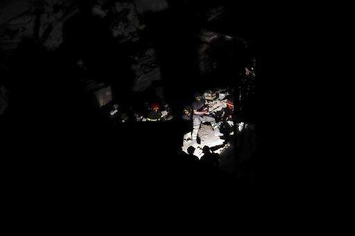 Rescuers search for victims beneath destroyed houses following Wednesday's earthquake in Pescara Del Tronto, Italy, Thursday, Aug. 25, 2016. Rescue crews raced against time Thursday looking for survivors from the earthquake that leveled three towns in central Italy, but the death toll rose to 247 and Italy once again anguished over trying to secure its medieval communities built on seismic lands. (AP Photo/Gregorio Borgia) The Associated Press