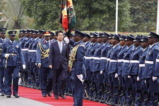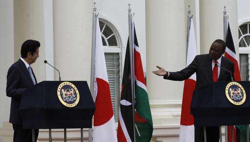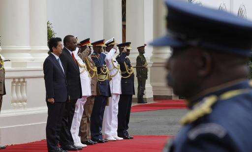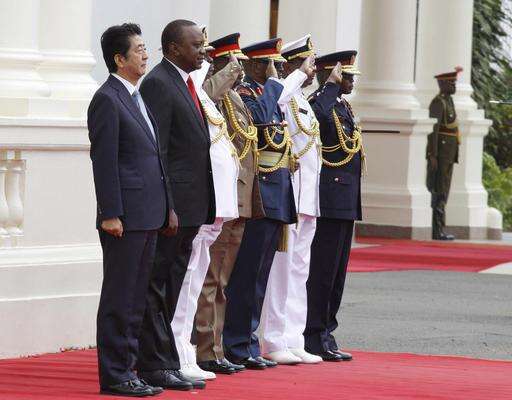 Abe was welcomed Friday by Kenyan President Uhuru Kenyatta at his official residence, State House, with a guard of honor and 19-gun salute. Kenyatta says the exchange of ideas and technology can hasten industrialization in Africa, which is key in alleviating poverty.