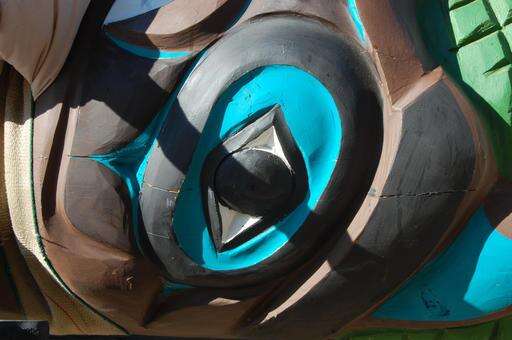 This year's brightly painted totem weighs 3,000 pounds and is carved of western red cedar. An eagle with a 12-foot wingspan sits on top, and the pole itself features a wolf and bear - symbols of leadership, cunning and courage - as well as white buffalo and tribal figures, said James, who has been carving totem poles for 44 years.